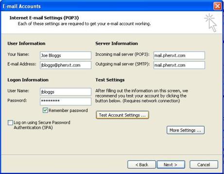 Email Address: Your email address, i.e. jbloggs@phenxt.com